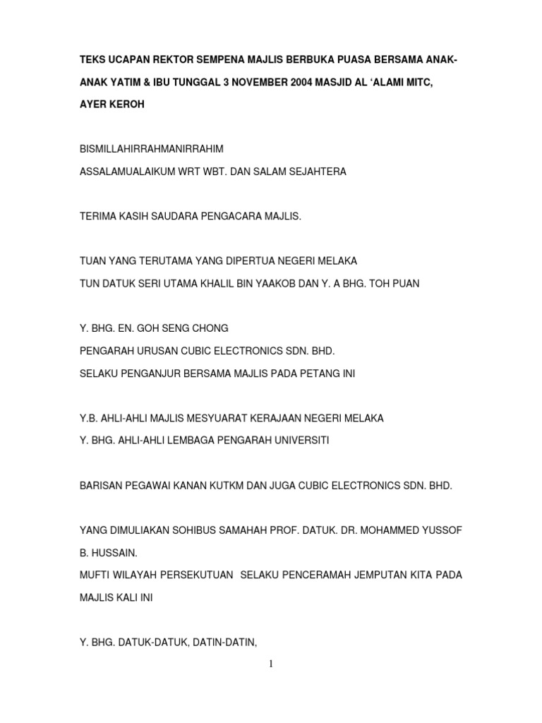 Contoh Teks Ucapan Pengerusi Majlis Pdf
